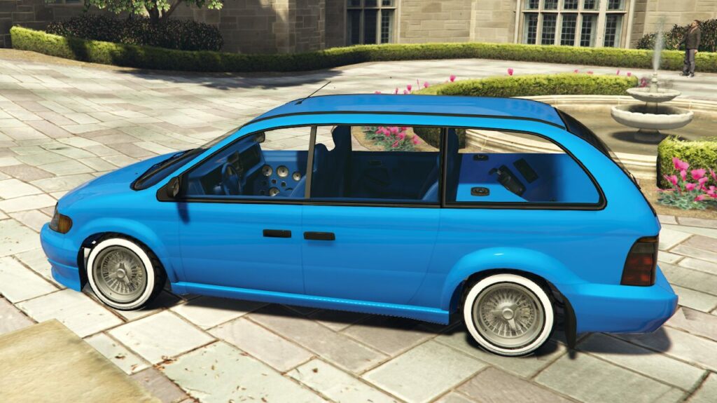 Simple, customisable à souhait, un volant en métal et des basses partout dans le véhicule ? C'est possible avec ce Minivan. Au moins, si vous partez en vacance, vous pourrez mettre votre musique préféré pour vous, et pour tout les autres citoyens que vous rencontrerez sur le chemin.